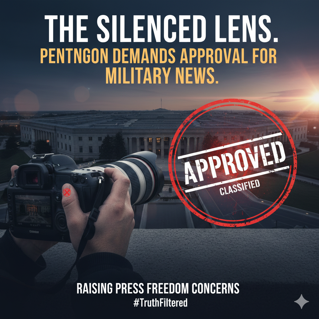 “Pentagon demands approval for military news, raising press freedom concerns.”