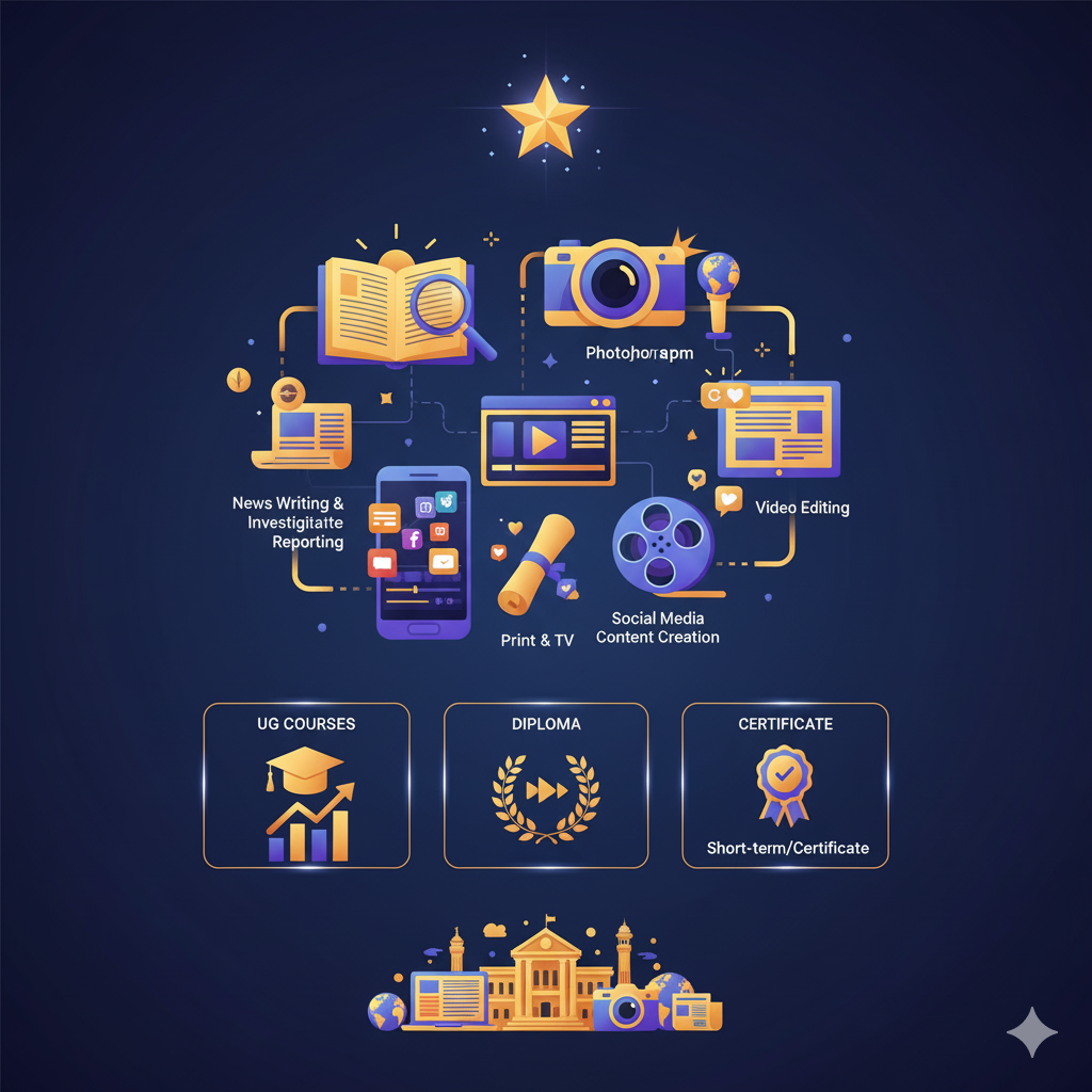Undergraduate Courses (UG): BA in Journalism, BA in Mass Communication, B.Sc. in Media Studies