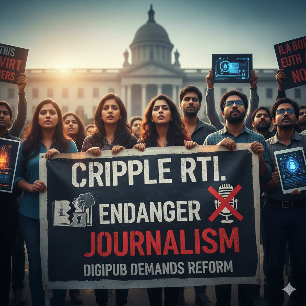 కొత్త డేటా నిబంధనలు RTI వ్యవస్థను బలహీనపరచి, జర్నలిజం స్వేచ్ఛను ప్రమాదంలోకి నెడుతున్నాయని DIGIPUB తీవ్ర ఆందోళన వ్యక్తం చేసింది.“సత్యాన్ని వెలికి తీయడానికి ఉన్న శక్తివంతమైన సాధనాన్ని దెబ్బతీయొద్దు” అని వారు హెచ్చరించారు.