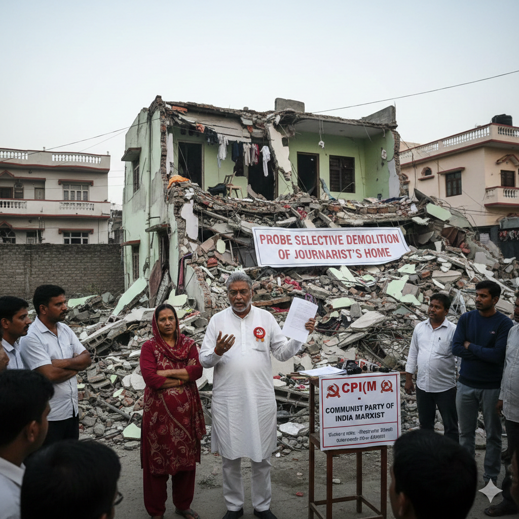 “జర్నలిస్ట్ ఇంటిని నేలమట్టం చేశారు: CPI(M) ‘లక్ష్యిత చర్య’గా అభివర్ణించి, ఉన్నత స్థాయి దర్యాప్తు కోరింది”